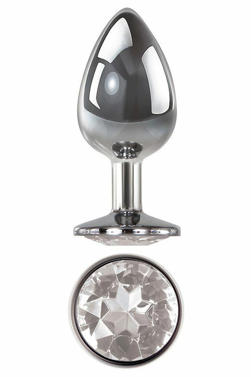 Play in style with this polished aluminium plug, featuring a stunning clear gem base. The larger size is great for those already dipping their toes into anal play, and are ready to move on to something bigger. The plug is easy to insert, thanks to the tapered tip and flared safety base.