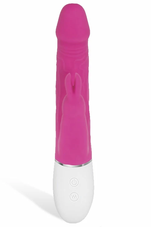 This rabbit vibrator features a realistic, flexible silicone shaft that moves with your body and a bunny ear clitoral stimulator.