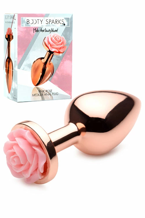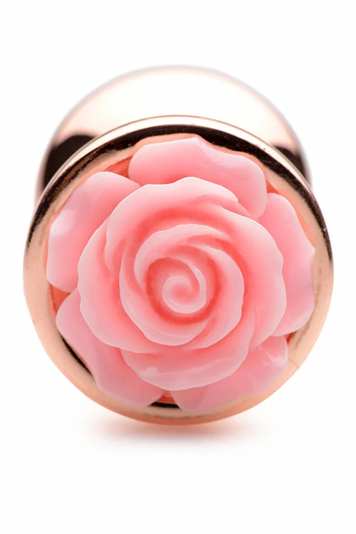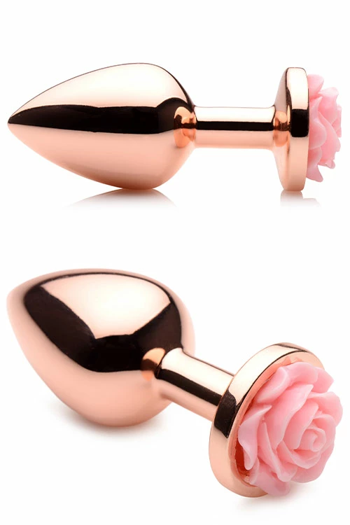 Enjoy this gorgeous rose-gold butt plug topped with a delicate, pink flower! Feel full and get a delicious stretch while hinting at the treasure underneath.