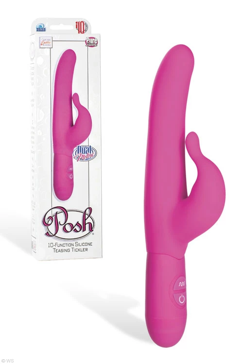 This super slim silicone rabbit vibrator from California Exotic offers an incredible 10 functions of vibration, pulsation and escalation. The slight curve in the shaft will also provide you with G-spot stimulation while the tickler will pleasure you externally.