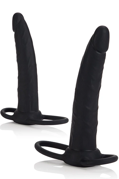 Double penetration, double the fun!! This premium, solid Silicone double penetration probe enables comfortable erection and testicular support and providing pleasure and empowerment for both involved!Β