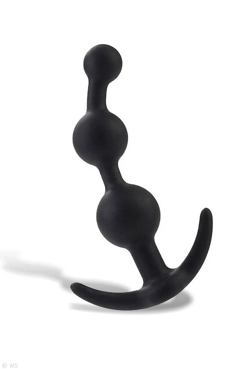 Uniquely shaped with graduating booty beads, the silicone stimulator is flexible and pliable for comfort and durability and features an EZ pull handle.