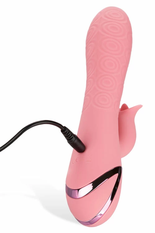 The shaft is adorned with concentric circle textures while the clitoral stimulator holds an incredible flickering tongue for amped up sensations.