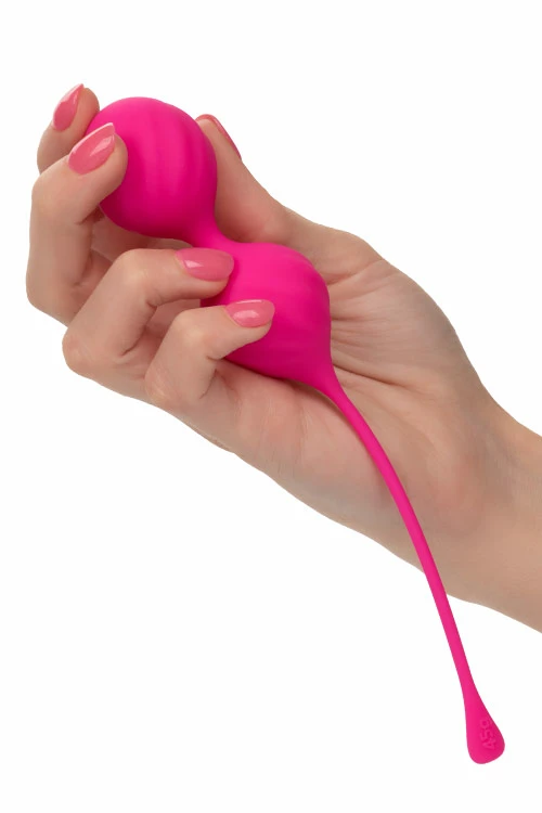 This two piece set of kegel exercisers allow you to train and strengthen your pelvic muscles, while the weighted design increases your arousal. The long retrieval cord makes removal stress free, and you can feel comforted by the soft and body safe silicone that encases each exerciser.