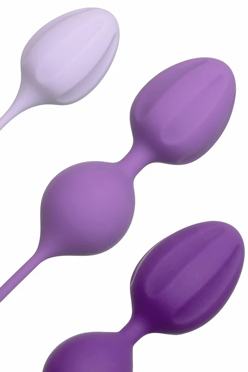 This three piece set of kegel exercisers allow you to train and strengthen your pelvic muscles, while the weighted design increases your arousal. The long retrieval cord makes removal stress free, and you can feel comforted by the soft and body safe silicone that encases each exerciser.