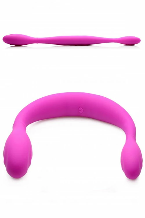 This versatile vibrating dong features two lightly textured different-sized heads (one at either end), each with its own strong motor delivering three speeds and four functions.