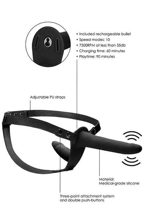 The harness features a three-point attachment system at the sides and base, with double snap-button closures to keep it in place securely. Adjustable straps promote a custom fit, made from comfortable faux leather straps.