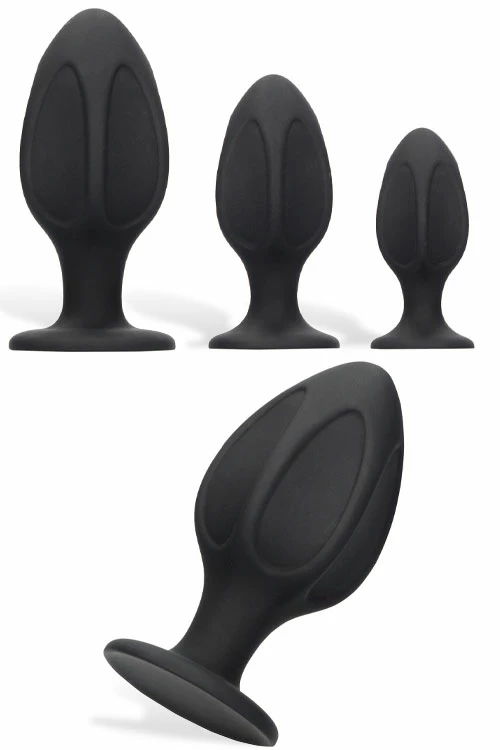 Each plug has a tapered tip for easier insertion and curved bulb with grooves for added stimulation.