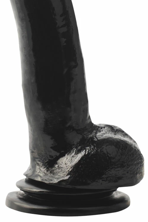 Experience deep satisfaction with this lengthy dildo, featuring a realistic head and balls plus a comfortably curved shaft.