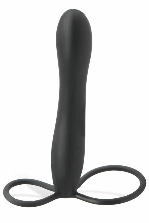 Double your pleasure and double the fun…with this strap-on dildo two’s better than one! The silicone ring on the top of the shaft acts as a performance-enhancing cock ring, while the larger bottom ring loops around his balls for a super-tight squeeze. You instantly become twice the man you were before, thanks to a smooth silicone shaft underneath that’s ready to double the trouble.