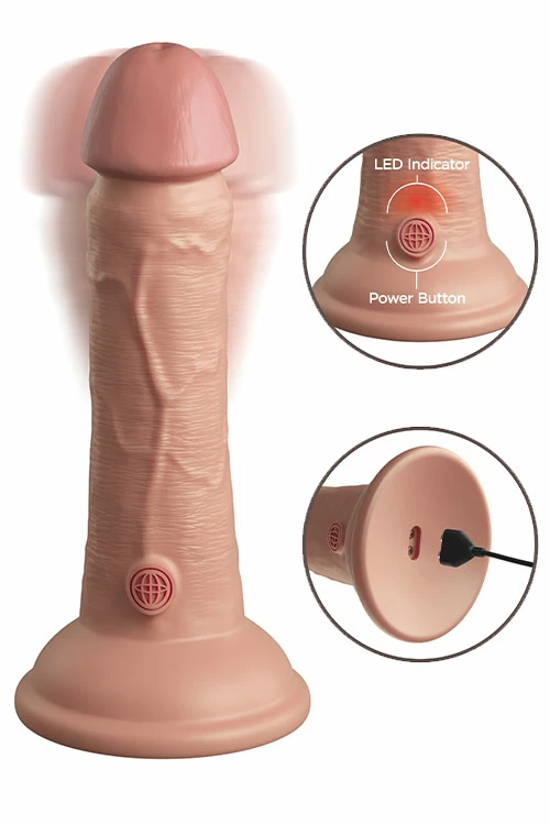With soft outer skin wrapped around a hard inner shaft, the King Cock is the erection that never quits. The dual density construction, skin-like texture and detailing gives you the look and feel of a real penis, and the solid suction cup has been designed for superior adherence, giving you a safe, secure mount before you do.
