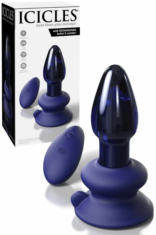 Enjoy total versatility with this glass butt plug, featuring a remote control and removable suction cup.