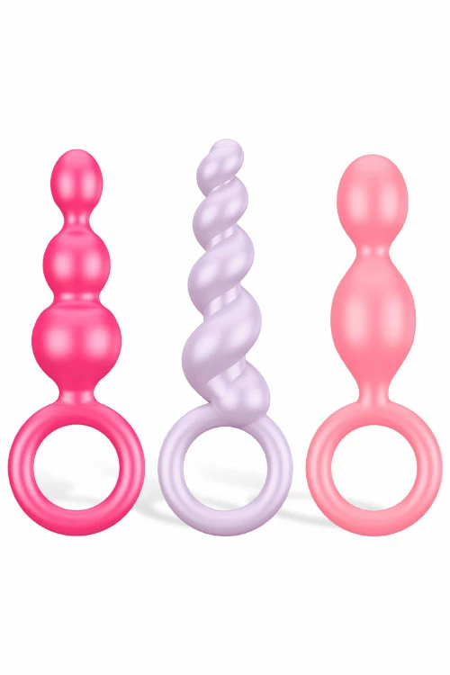 This three-piece set includes different sized and shaped butt plugs so that you can explore different stimulating sensations: dual bulb, triple bulb, and spiral.