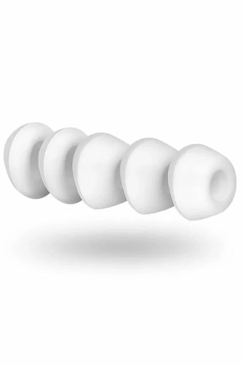 This set of five attachments is designed for use with the Satisfyer Pro 2 (Item Code: T0010STF & T0030STF), allowing you to enjoy your toy while one head is washed and left to dry, or providing spares in case any become worn out or lost.