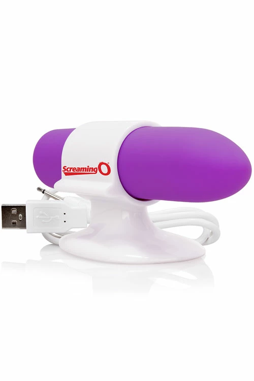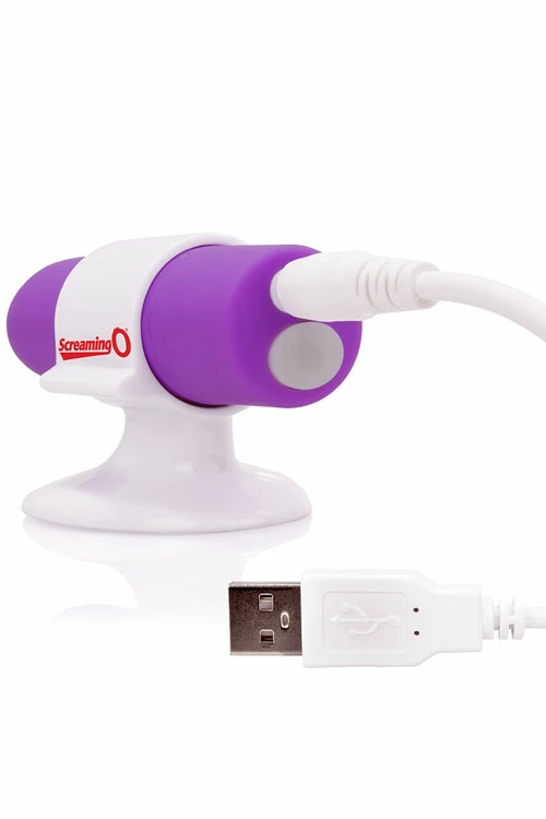 Bullet comes with its own USB charging cable and stand that doubles as a finger cradle. Just slip the bullet through the cradle and position the narrow portion between two fingers for comfortable enjoyment solo or with a partner.Â