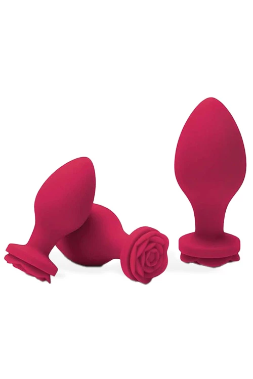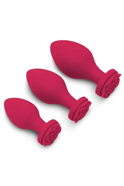 This set of 3 silicone rose shaped butt plugs comes with in a convenient small, medium, and large size ideal for anal training or added booty stimulation during bedroom play. Pretty in design, pretty in nature, these soft textured plugs give you something to clench down on and add a sensual full sensation to your bedroom play. Or other room play. Fully waterproof, these plugs are great for adventures out and about, whether that means the pool, spa, shower or anywhere else your fantasies take you.