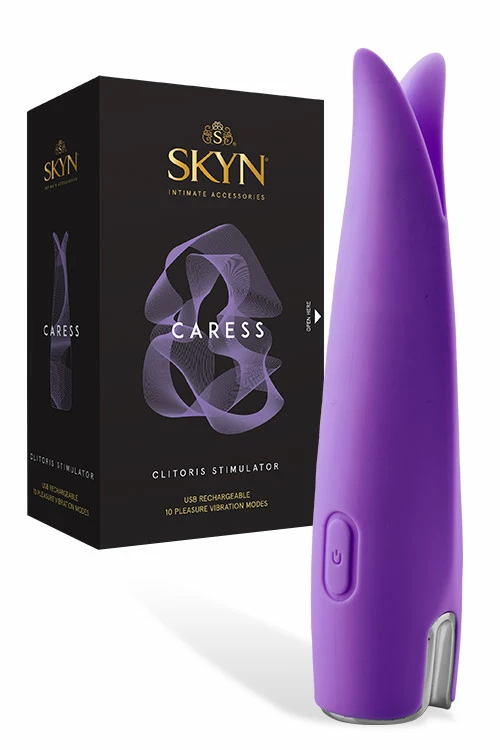 Introducing the SKYN® Caress Clitoris Stimulator, which promises to imitate the natural feeling of oral stimulation. For anyone with a vulva, this discreetly sized product has 10 vibration modes to assist in exploring different levels of pleasure to suit you or your partner.