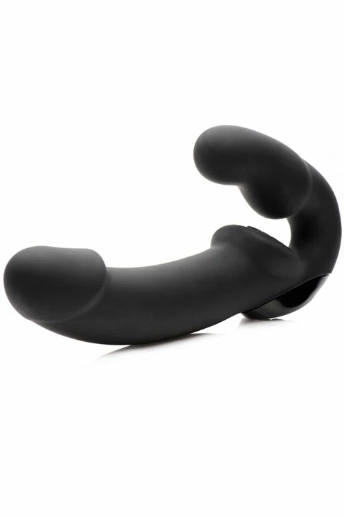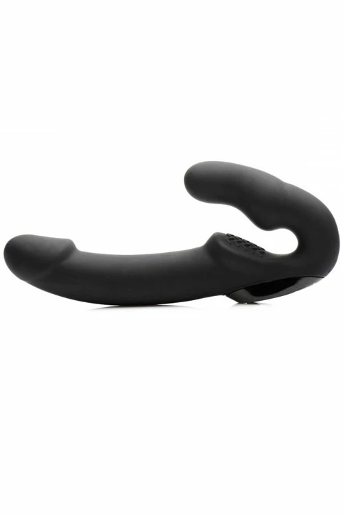 Thanks to a convenient wireless remote control, this strapless strap on increases the pleasure possibilities of pegging or partner penetration without a penis.