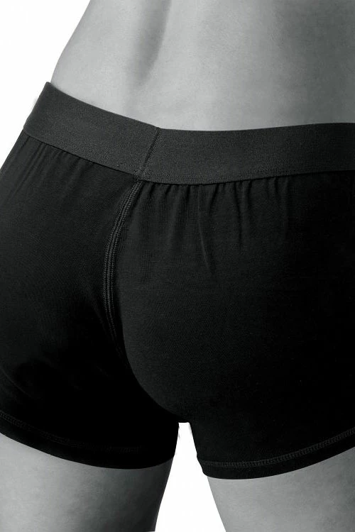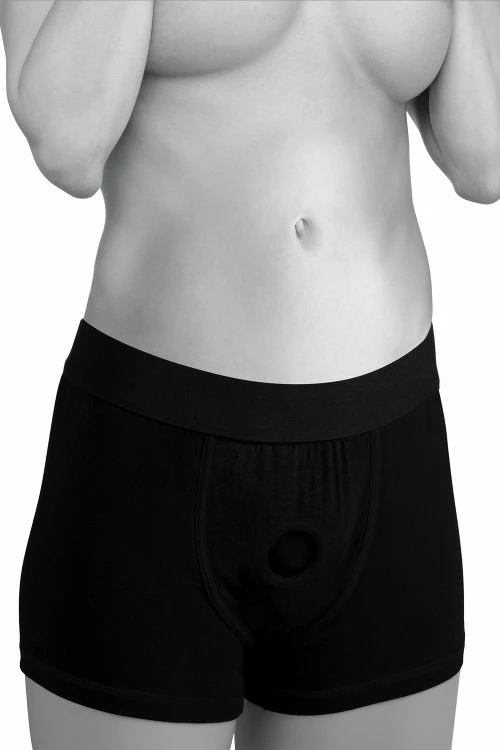 This boxer brief-style harness feels just like underwear and comes with an o-ring that stretch to accommodate a range of dildo sizes.