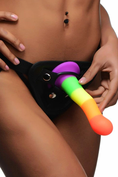 The O-ring is surrounded by snaps, meaning you can easily strap this dildo in, or any of your other faves.